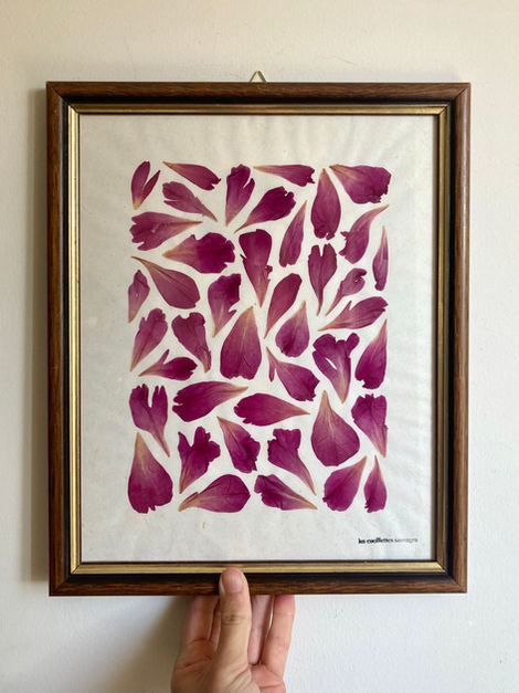 "Les all-over" sont des créations réalisées avec plusieurs fleurs de la même essence. La répétition et l'agencement précis des spécimens crée un motif monochrome, à la manière d'une planche de collection.