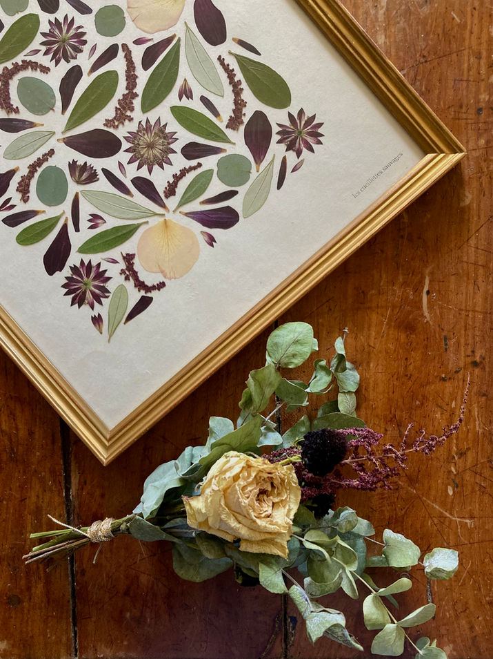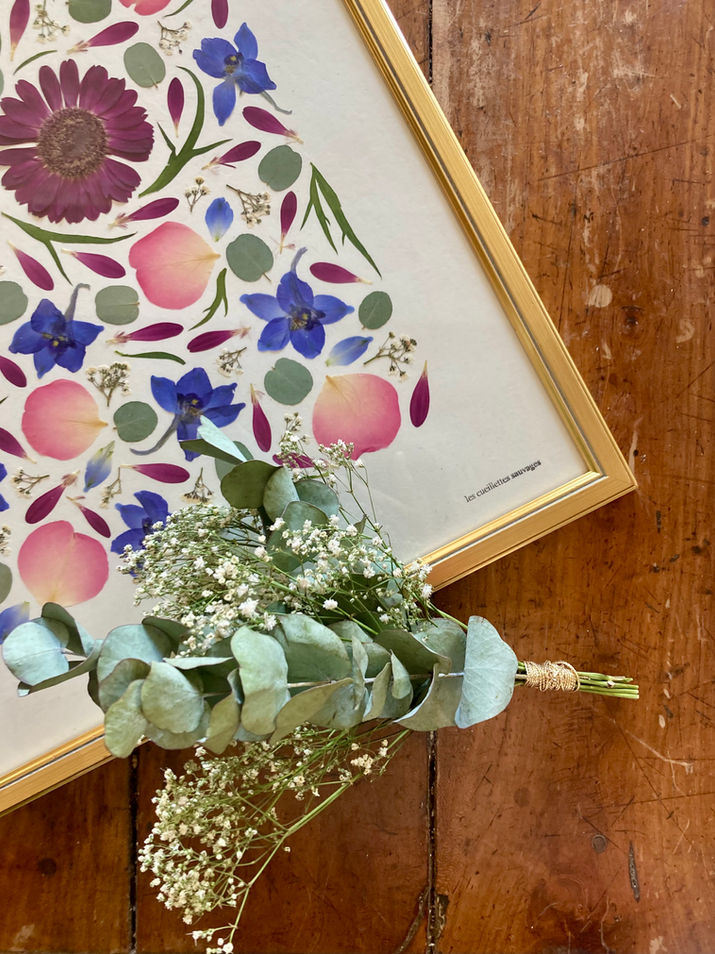 Je propose des créations personnalisées réalisées avec les fleurs d'un bouquet de mariage pour le transformer en souvenir inoubliable ! N'hésitez pas à me contacter pour plus d'informations.